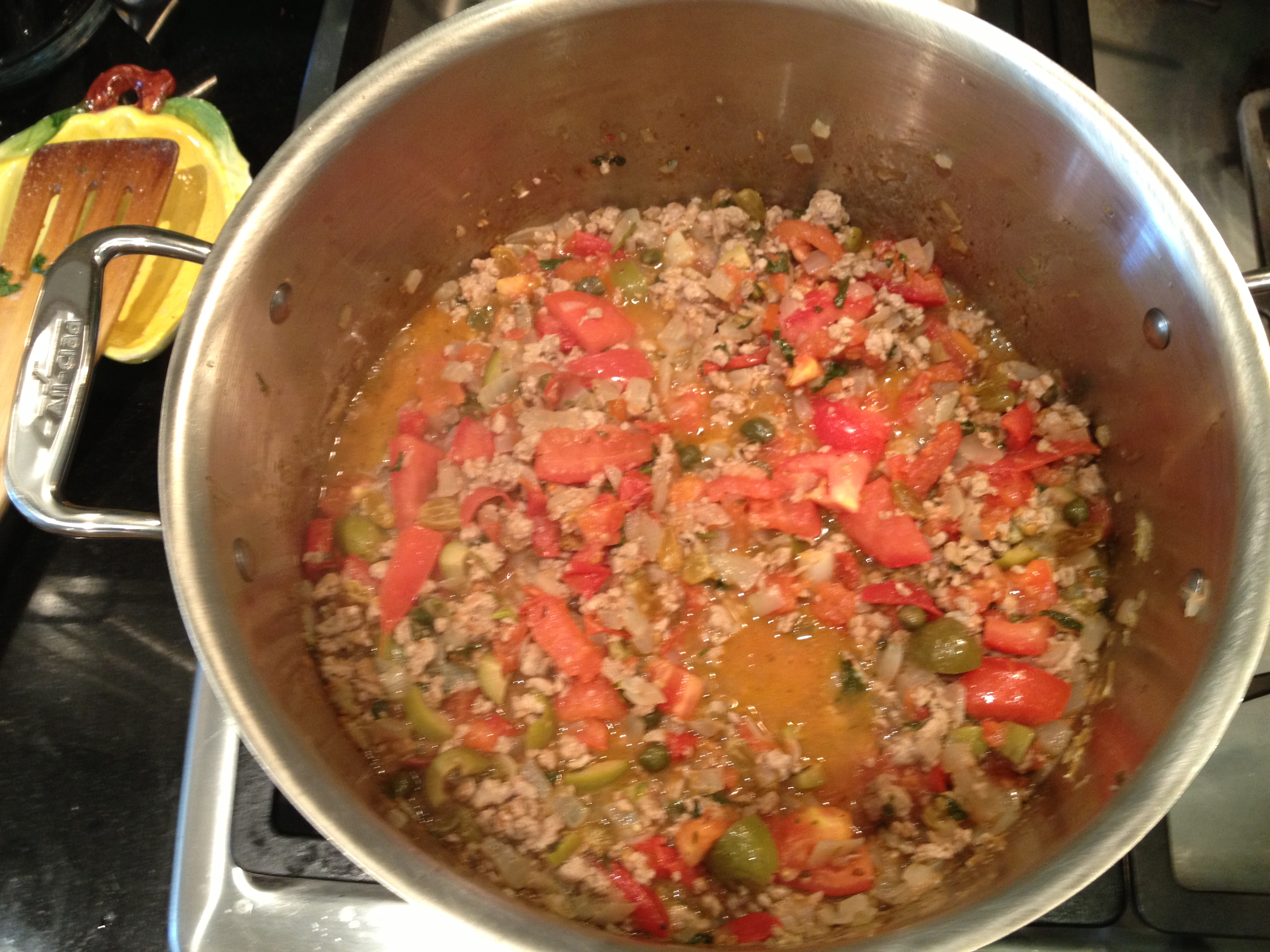 As promised, here is the first of several favorites from our Zany Test Kitchen party. Chili is very popular in our house, and a great go-to dish that everyone can enjoy with very little substituting for various allergies. When my husband’s aunt Virginia made this for us last fall during a visit to her home in Vermont, we all had second helpings. She used ground beef and served it over rice–perfect for a crisp fall day in New England when appetites are hearty. In our attempt to make it a little less “rib-sticking” and also friendly for friends with allergies to beef, Anna and I swapped in ground turkey and served up the chili in lettuce cups.