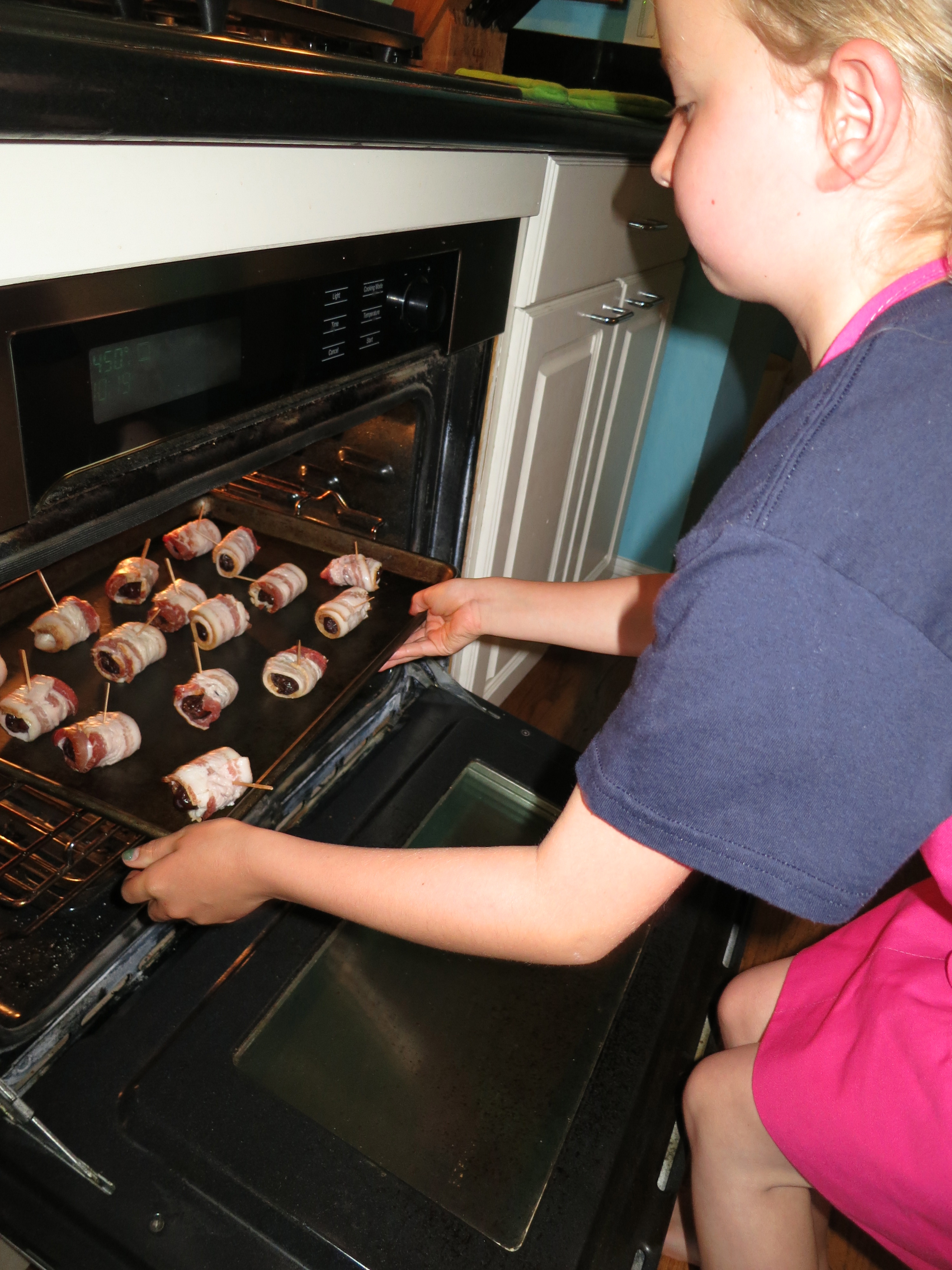 The first time Anna’s kids saw this sweet salty treat, they back away because they “looked scary.” Once they realized they were bacon wrapped around something so sweet, they both gobbled them up. Just tell your kids it’s candy.